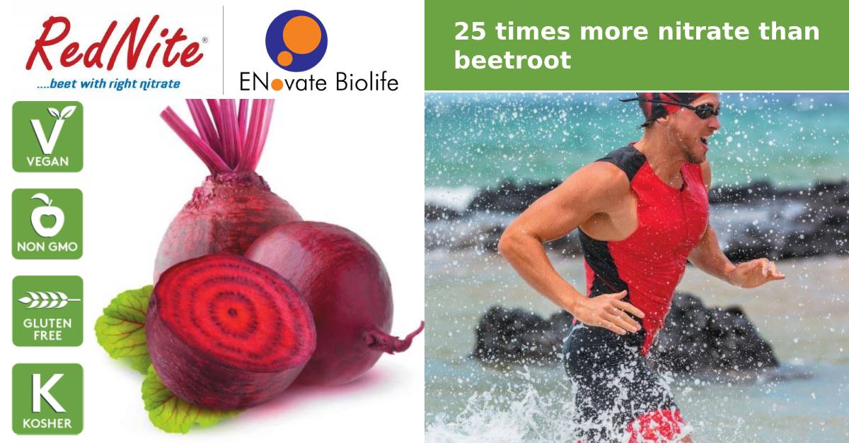 RedNite® is the first fresh beetroot concentrate powder, which is high in nitrates and clinically proven to improve exercise performance and endurance in athletes. It has 25 times more nitrate than beetroot.